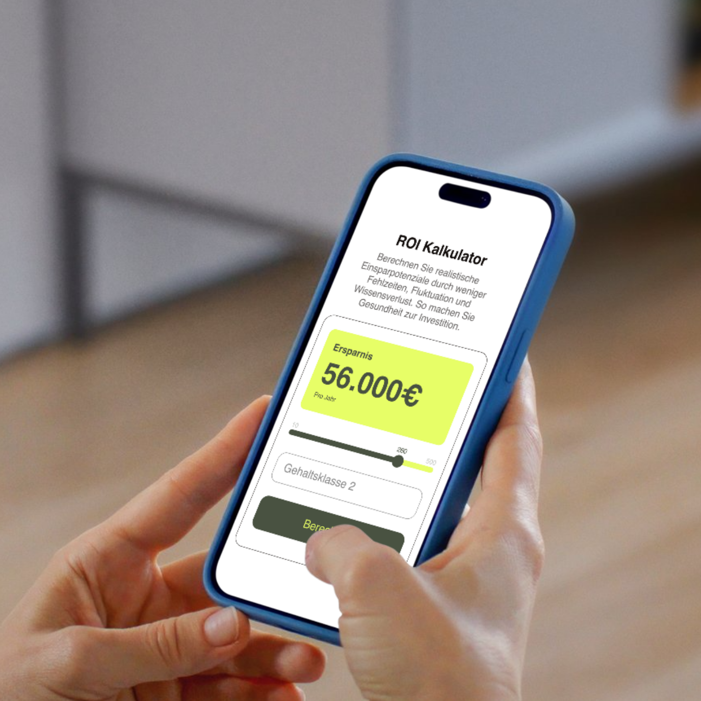 Berechnen Sie mit wenigen Klicks Ihr individuelles Einsparpotenzial – durch weniger Fehlzeiten, geringere Fluktuation und den Erhalt von Erfahrungswissen.